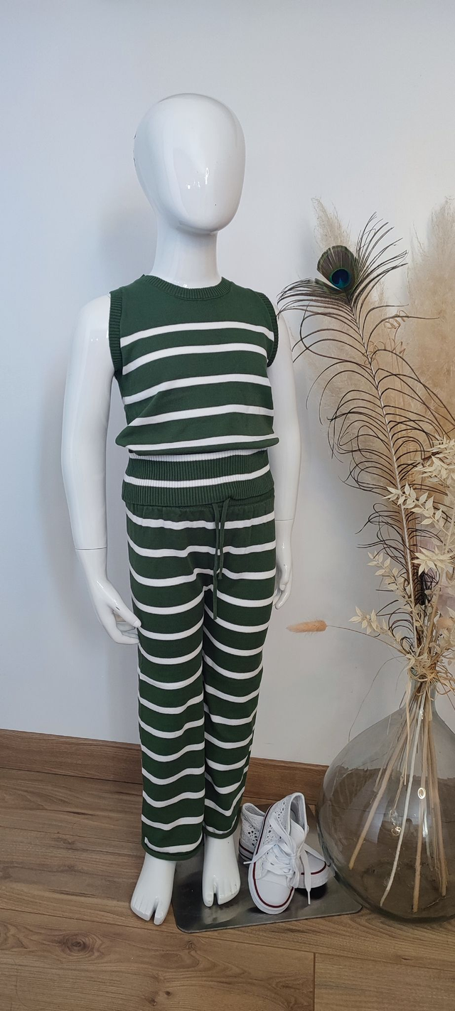 Ensemble fille Olive en maille, haut + pantalon rayé 2 pièces