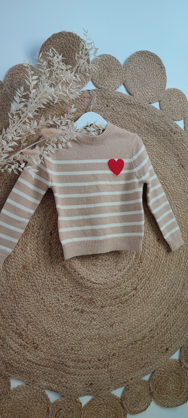 Pull Alice marinière à cœurs rouge, matière très douce.
