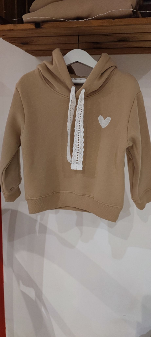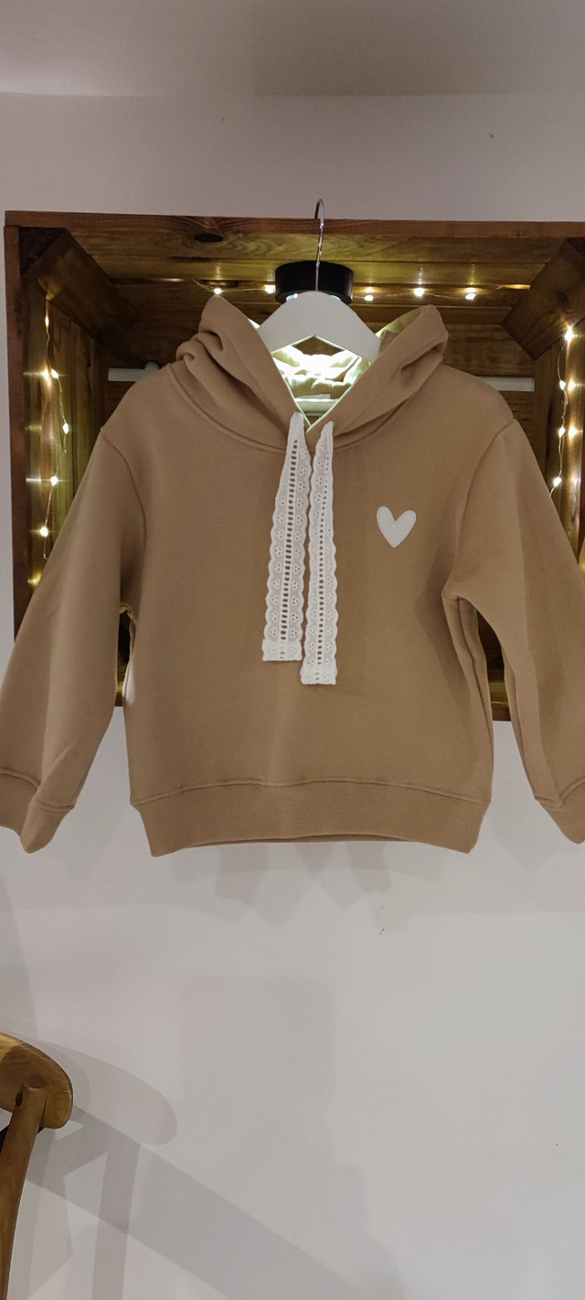 Sweat à capuche Camel coeur blanc
