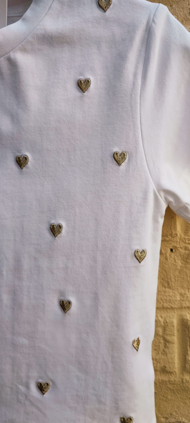 T-shirt blanc avec broderie cœur doré